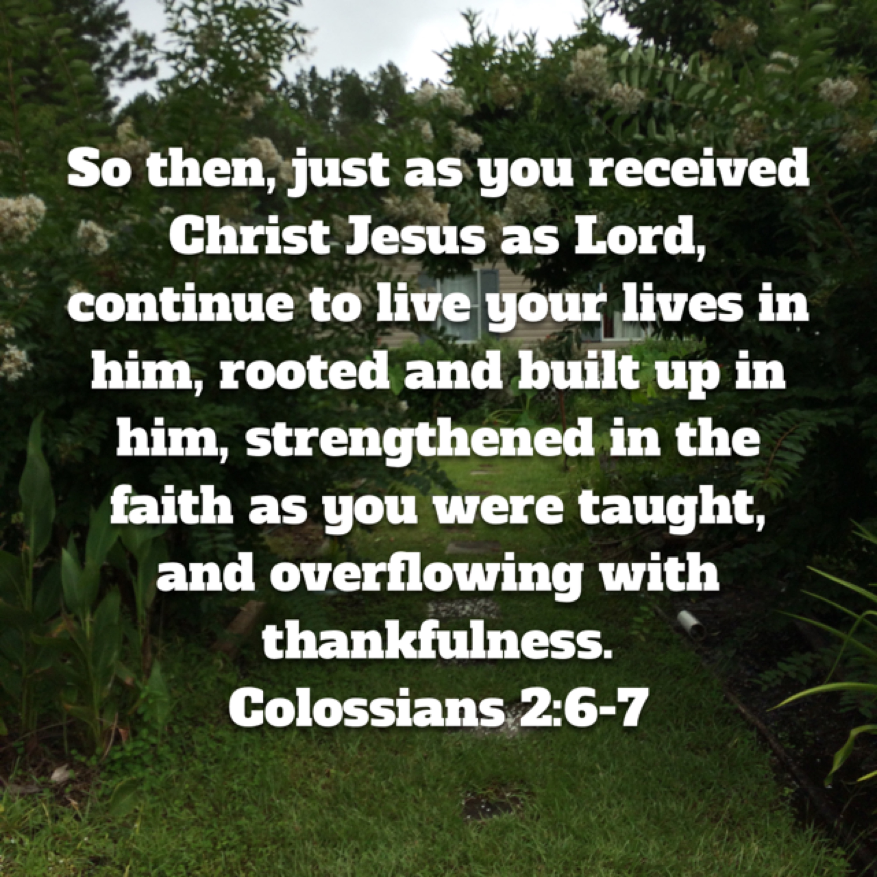 But now so for those rooted [through their personal relationship with The Almighty. ] And built up [through a relationship that is established through prayer, Bible study, service, ministry, and worship that occurs at home not just once weekly.] So, just remain root in Him. He is our source of strength and spiritual vibrancy. Our connection with Him grows our spiritual top root and that strengthens us and keeps us spiritually grounded.