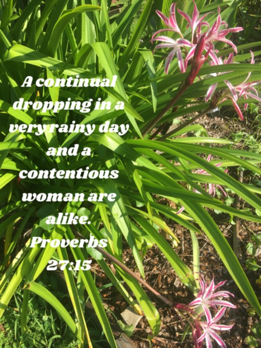 15 A continual dropping in a very rainy day and a contentious woman are alike. 16 Whosoever hideth her hideth the wind, and the ointment of his right hand, which bewrayeth itself. A brawling and troubling making wife/mate is like a nagging toothache. It is better to apply novacaine to the ache and stop it. This is where marital counseling is so crucial. Within this century we would handle such a mate with a letter of divorce. That is not showing love to the other person. Neither is remaining silent. We will always take the same challenges with us into every relationship that we establish. It is better to receive the counseling that we need to change our behaviors. They we will appply “ointment” to our relationship that is fraying at the seams and on the hems.