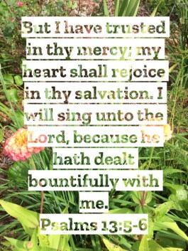 5 But I have trusted in thy mercy; my heart shall rejoice in thy salvation. 6 I will sing unto the LORD, because he hath dealt bountifully with me.