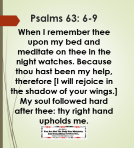For some of us, the best time for us to go before God is when we are contemplating what has happened in our day. May even do it when we are thinking about what will happen in our day. We cannot forget to thank him for who he is to us and what he has done for us. We are his spiritual chicks, and He protects us under his wings. The metaphor of the protective wings of God is used in several psalms (Psalm 17:8; 36:7; 57:1; 61:4 ). His right hand depicts the power that he uses to protect his children. The right hand also represents Jesus Christ!