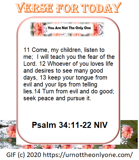 11 Come, my children, listen to me; I will teach you the fear of the Lord. 12 Whoever of you loves life and desires to see many good days, 13 keep your tongue from evil and your lips from telling lies.14 Turn from evil and do good; seek peace and pursue it.