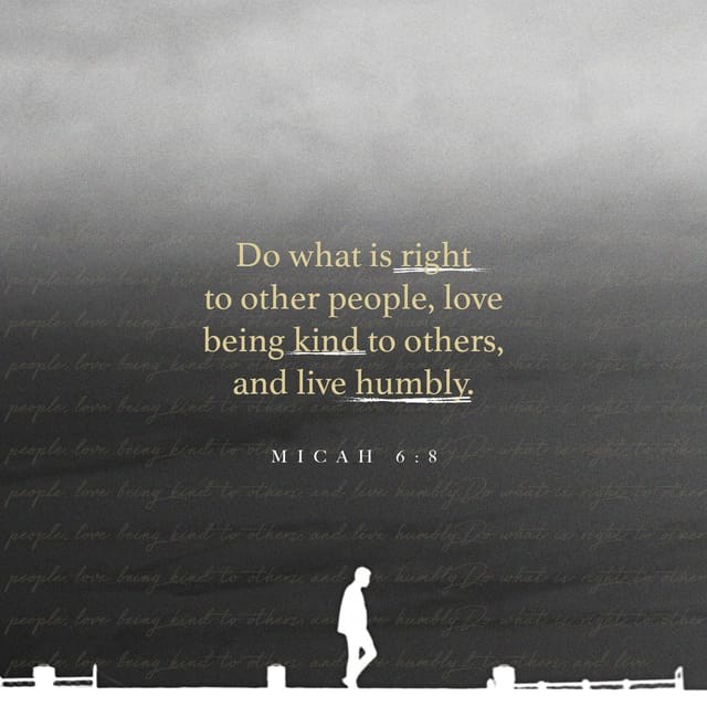He has shown you, O man, what is good; And what does the Lord require of you. But to do justly, To love mercy, And to walk humbly with your God? Micah 6:8 NKJV