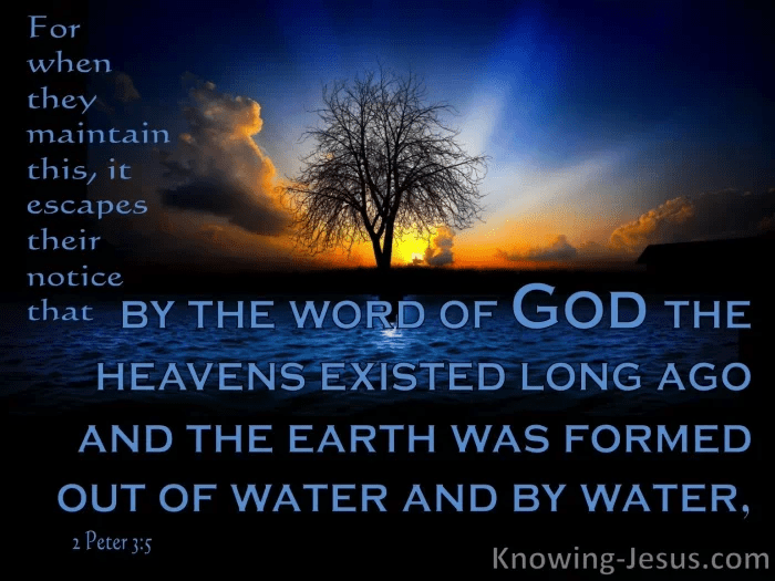 - Genesis 1:1-2 In the beginning God created the heavens and the earth. The earth was formless and void, and darkness was over the surface of the deep, and the Spirit of God was moving over the surface of the waters.