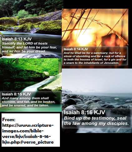 17 And I will wait upon the LORD, that hideth his face from the house of Jacob, and I will look for him. 18 Behold, I and the children whom the LORD hath given me are for signs and for wonders in Israel from the LORD of hosts, which dwelleth in mount Zion. 19 And when they shall say unto you, Seek unto them that have familiar spirits, and unto wizards that peep, and that mutter: should not a people seek unto their God? for the living to the dead? 20 To the law and to the testimony: if they speak not according to this word, it is because there is no light in them. 21 And they shall pass through it, hardly bestead and hungry: and it shall come to pass, that when they shall be hungry, they shall fret themselves, and curse their king and their God, and look upward. 22 And they shall look unto the earth; and behold trouble and darkness, dimness of anguish; and they shall be driven to darkness.
