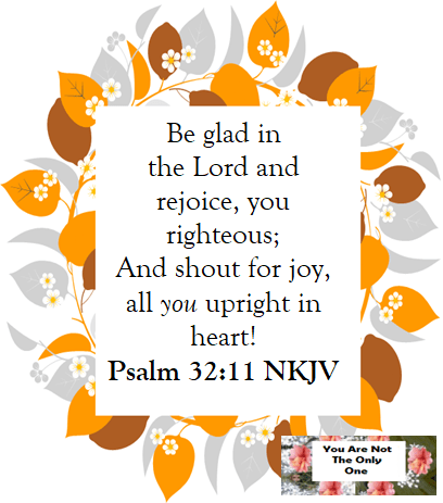 Psalm 32:11 nkjv Be glad in the Lord and rejoice, you righteous; And shout for joy, all you upright in heart!
