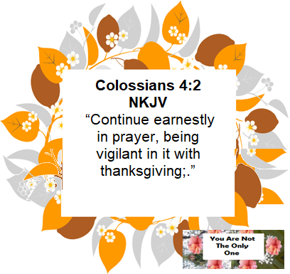 Colossians 4:2 “Continue earnestly in prayer, being vigilant in it with thanksgiving;.”