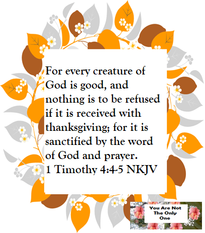 1 Timothy 4:4-5 “For everything God created is good, and nothing is to be rejected if it is received with thanksgiving, because it is consecrated by the word of God and prayer.”