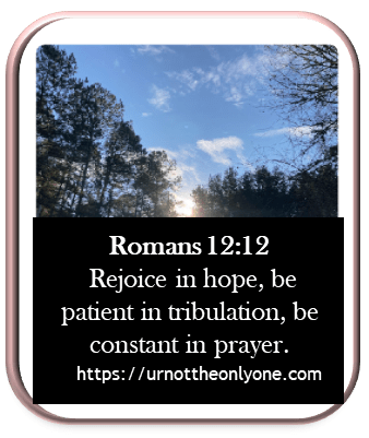 - Romans 12:12 ~ Rejoice in hope, be patient in tribulation, be constant in prayer.