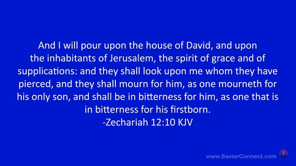 Zechariah 12:10 King James Version (KJV) 10 And I will pour upon the house of David, and upon the inhabitants of Jerusalem, the spirit of grace and of supplications: and they shall look upon me whom they have pierced, and they shall mourn for him, as one mourneth for his only son, and shall be in bitterness for him, as one that is in bitterness for his firstborn.