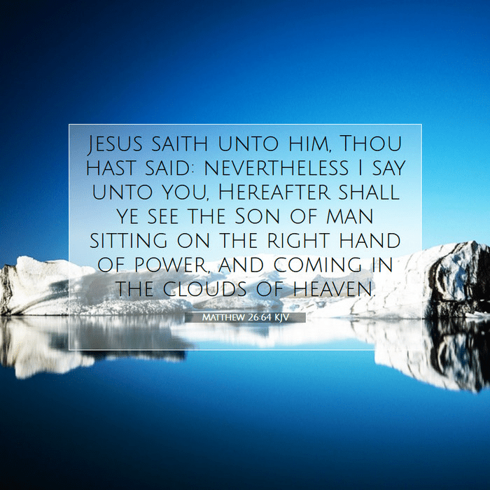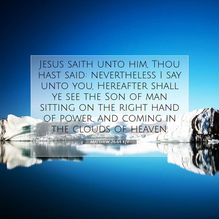 Matthew 26:64 King James Version (KJV) 64 Jesus saith unto him, thou hast said: nevertheless, I say unto you, Hereafter shall ye see the Son of man sitting on the right hand of power, and coming in the clouds of heaven.