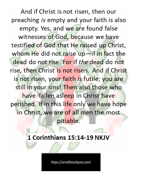 Without the Resurrection, our preaching and our faith are all in vain (1 Corinthians 15:14, 17-19).