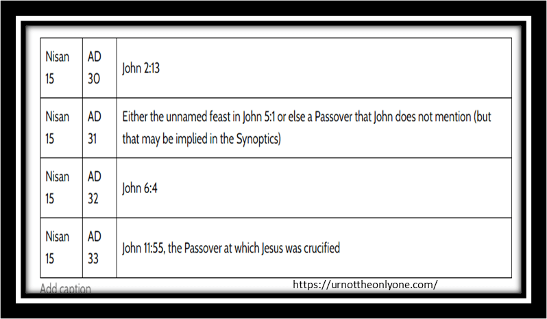 | Nisan 15 | AD 33 | John 11:55, the Passover at which Jesus was crucified |