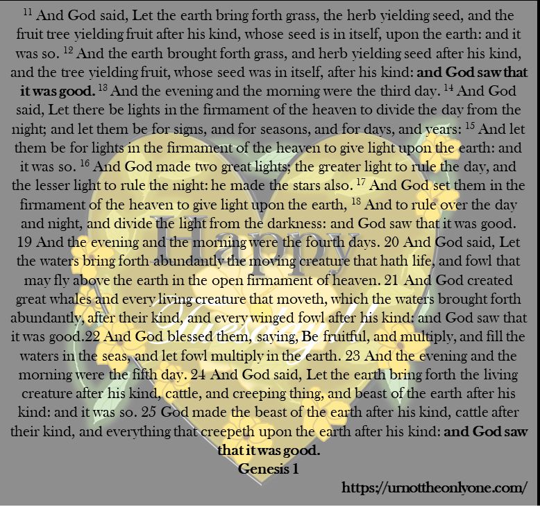 11 And God said, Let the earth bring forth grass, the herb yielding seed, and the fruit tree yielding fruit after his kind, whose seed is in itself, upon the earth: and it was so. 12 And the earth brought forth grass, and herb yielding seed after his kind, and the tree yielding fruit, whose seed was in itself, after his kind: and God saw that it was good.
