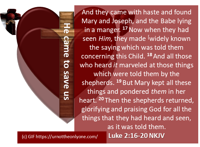 This writer contends that God looked at those humble servants and saw hearts willing to become his first disciples. After all, what did they do when they left the manger” “When they saw him, they spread the word concerning what had been told them about this child, and all who heard it were amazed at what the shepherds said to them.” (Luke 2:17 ).  “Now when they had seen Him, they made [a]widely known the saying which was told them concerning this Child.”