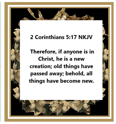 2 Corinthians 5:17 – Therefore, if anyone is in Christ, he is a new creation; old things have passed away; behold, all things have become new.