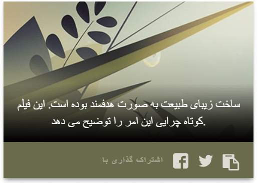 Farsi: ساخت زیبای طبیعت به صورت هدفمند بوده است. این فیلم کوتاه چرایی این امر را توضیح می دهد. http://story4.us/URNOTTHEONLYONE/fa