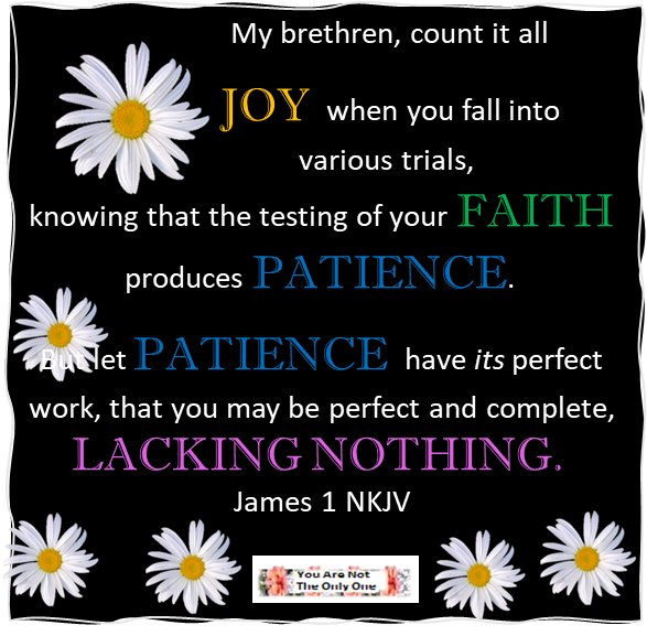 My brethren, count it all joy when you fall into various trials, knowing that the testing of your faith produces patience. But let patience have its perfect work, and its perfect work, that you may be perfect and complete, lacking nothing. James 1 NKJV