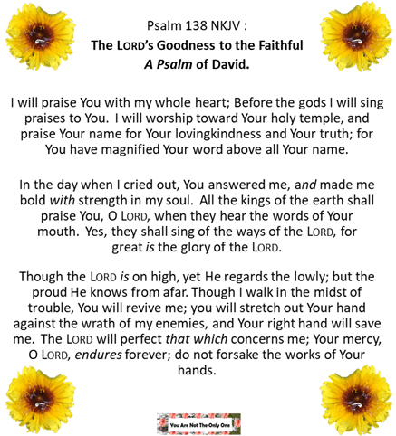 Psalm 138 NKJV https://www.biblegateway.com/passage/?search=psalm%20138&version=NKJV