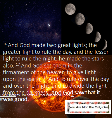 13 And the evening and the morning were the third day. 14 And God said, Let there be lights in the firmament of the heaven to divide the day from the night; and let them be for signs, and for seasons, and for days, and years: 15 And let them be for lights in the firmament of the heaven to give light upon the earth: and it was so. 16 And God made two great lights; the greater light to rule the day, and the lesser light to rule the night: he made the stars also. 17 And God set them in the firmament of the heaven to give light upon the earth, 18 And to rule over the day and over the night, and to divide the light from the darkness: and God saw that it was good.
