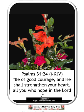 • Psalms 31:24 (NKJV)“Be of good courage, And He shall strengthen your heart, All you who hope in the Lord .”