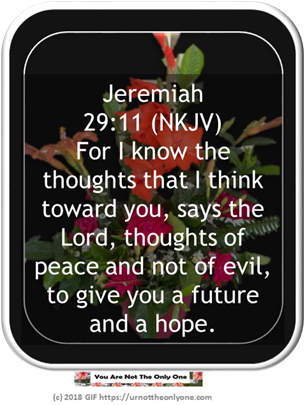 • Jeremiah 29:11 (NKJV) For I know the thoughts that I think toward you, says the Lord, thoughts of peace and not of evil, to give you a future and a hope.