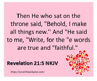 Thank You for giving me new life and hope, Abba. Even though I fall short, You let me start fresh each day, covered by Your righteousness. Every morning, I am comforted by how You keep renewing me. Revelation 21:5 NKJV.