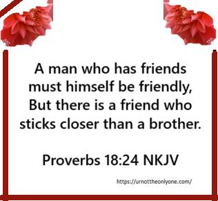 Please guide me and shape me each day. I come to You with a humble heart, knowing I need You at the center of my life. Friends may come and go, but Your friendship lasts forever. Proverbs 18:24 NKJV reminds me that to have true friends, Your children must also be friendly. Still, the most important friendship anyone can have is with You, Lord Jesus, our eternal friend. You are my friend and Father, Abba. Jesus has always been closer to me than any relative, past or present.