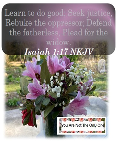 “Learn to do good, seek justice, Rebuke the oppressor; Defend the fatherless, plead for the widow.” Isaiah 1:17 NKJV